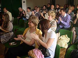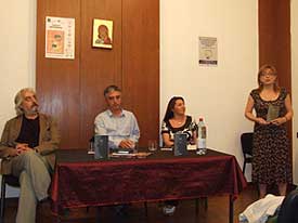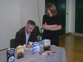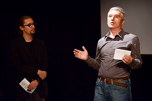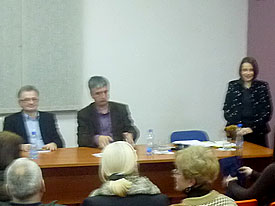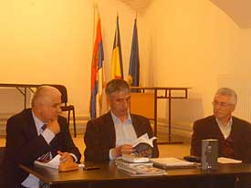 U okviru meseca srpske kulture u srpskom kulturno - dokumentacionom centru u Budimpešti otvoren je novi bioskop. Na otvaranju su prikazani dokumentarni filmovi "Prohujalo u Vemenu" i "Oluja nad Bačkom", budimpeštanskog autorskog tandema Snežana Milivojević i Đorđe Šibalin. Govoreći kao specijalni gost na otvaranju srpskog bioskopa o autorima i filmovima Radoman Kanjevac je rekao da su "Snežana Milivojević i Đorđe Šibalin jedinstveni autorski tandem u srpskom nacionalnom korpusu koji predstavljan komplimen i za srpsku i za mađarsku kulturu. Njihovi filmovi o Nikoli Tesli, Katarini Ivanović, porodici Rus, govore o ljudima i temama koje spajaju dve kulture uzvišeno, sa puno ukusa i bez imalo patetike". Ove nedelje u srpskom bioskopu u Budimpešti(ulica Nagymezo 49) biće prikazan igrani film Dragana Bjelogrlića "Montevideo - vidimo se" i dokumentarni film Slađane Zarić o heroini Milunki Savić. Na slici: Milan Đurić, direktor Srpskog kulturnog centra i Radoman Kanjevac, na otvaranju srpskog bioskopa u Budimpešti KRUŠEVAC KULTURNI CENTAR ČETVRTAK, 31. JANUAR u 19 h PREDSTAVLJANJE KNJIGE „ČOVEK U SENCI“ UČESTVUJU: